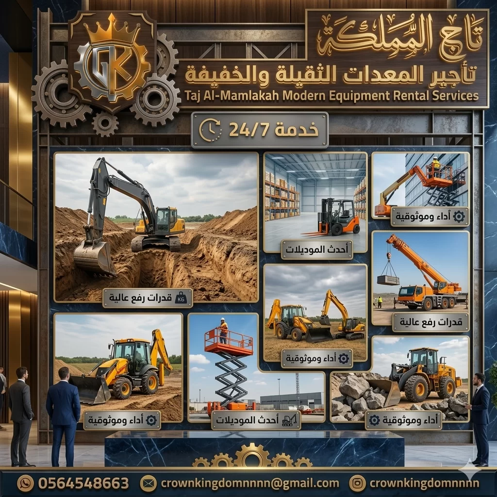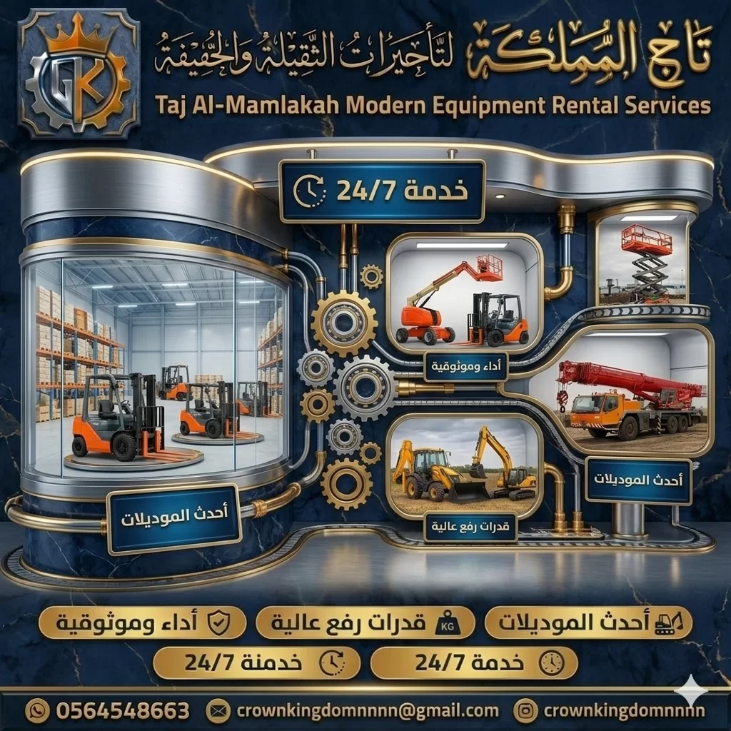 Forklift scissor lift rental Dammam ⭐⭐ Taj Al-Mamlaka Heavy & Light Equipment Rental ☎ 0564548663 ⭐⭐ - Scissor Lift Rental in Dammam Saudi Arabia - Man Lift & Boom Lift Rental in Riyadh - Forklift Rental in Jeddah - Crane Rental Services in Jubail - Heavy Equipment Lifting Solutions in Khobar - Industrial Lifting Equipment Rental in Qatif - Construction Equipment Rental in Tabuk - Taj Al-Mamlaka provides professional and reliable heavy equipment rental services across Saudi Arabia including modern Scissor Lifts, Man Lifts, Boom Lifts, Forklifts, and Heavy Duty Cranes designed to support construction projects, warehouses, factories, logistics centers, maintenance work, and industrial operations requiring safe and efficient lifting solutions - our fleet includes Electric Scissor Lifts and Diesel Scissor Lifts with working heights from 6m - 8m - 10m - 12m - 14m - 16m - 18m, advanced Man Lifts and Boom Lifts with reach heights from 12m - 16m - 20m - 24m - 28m - 32m - 40m - 45m - 50m, powerful Forklifts with lifting capacities 1 Ton - 1.5 Ton - 2 Ton - 2.5 Ton - 3 Ton - 3.5 Ton - 5 Ton - 7 Ton - 10 Ton - 12 Ton - 15 Ton, and heavy Mobile Cranes from 10 Ton - 25 Ton - 40 Ton - 50 Ton - 80 Ton - 100 Ton - 200 Ton - 300 Ton - 500 Ton, suitable for lifting steel structures, machinery installation, warehouse operations, loading containers, logistics handling, maintenance work at height, construction projects and large industrial sites - strong SEO search keywords included such as Scissor Lift Rental Saudi Arabia - Scissor Lift for Rent in Dammam - Man Lift Rental Riyadh - Boom Lift Rental Near Me - Forklift Rental Jeddah Saudi Arabia - Forklift for Rent Near Me - Crane Rental Saudi Arabia - Mobile Crane Rental Dammam - Heavy Equipment Rental Saudi Arabia - Construction Equipment Rental KSA - Industrial Lifting Equipment Rental - Warehouse Forklift Rental - Aerial Work Platform Rental Saudi Arabia - all equipment is modern, inspected and ready for operation with fast delivery to project locations in Dammam, Riyadh, Jeddah, Jubail, Khobar, Qatif, Tabuk and across Saudi Arabia providing reliable lifting solutions for contractors, factories, warehouses and industrial companies looking for safe and professional heavy equipment rental services.